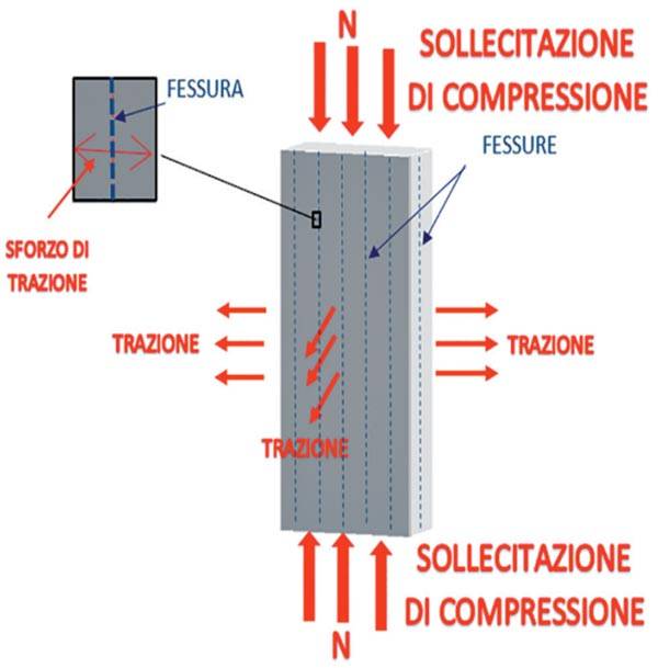 Il fenomeno di fessurazione che si genera in un pilastro in crisi statica appare come rappresentato in Figura 5.